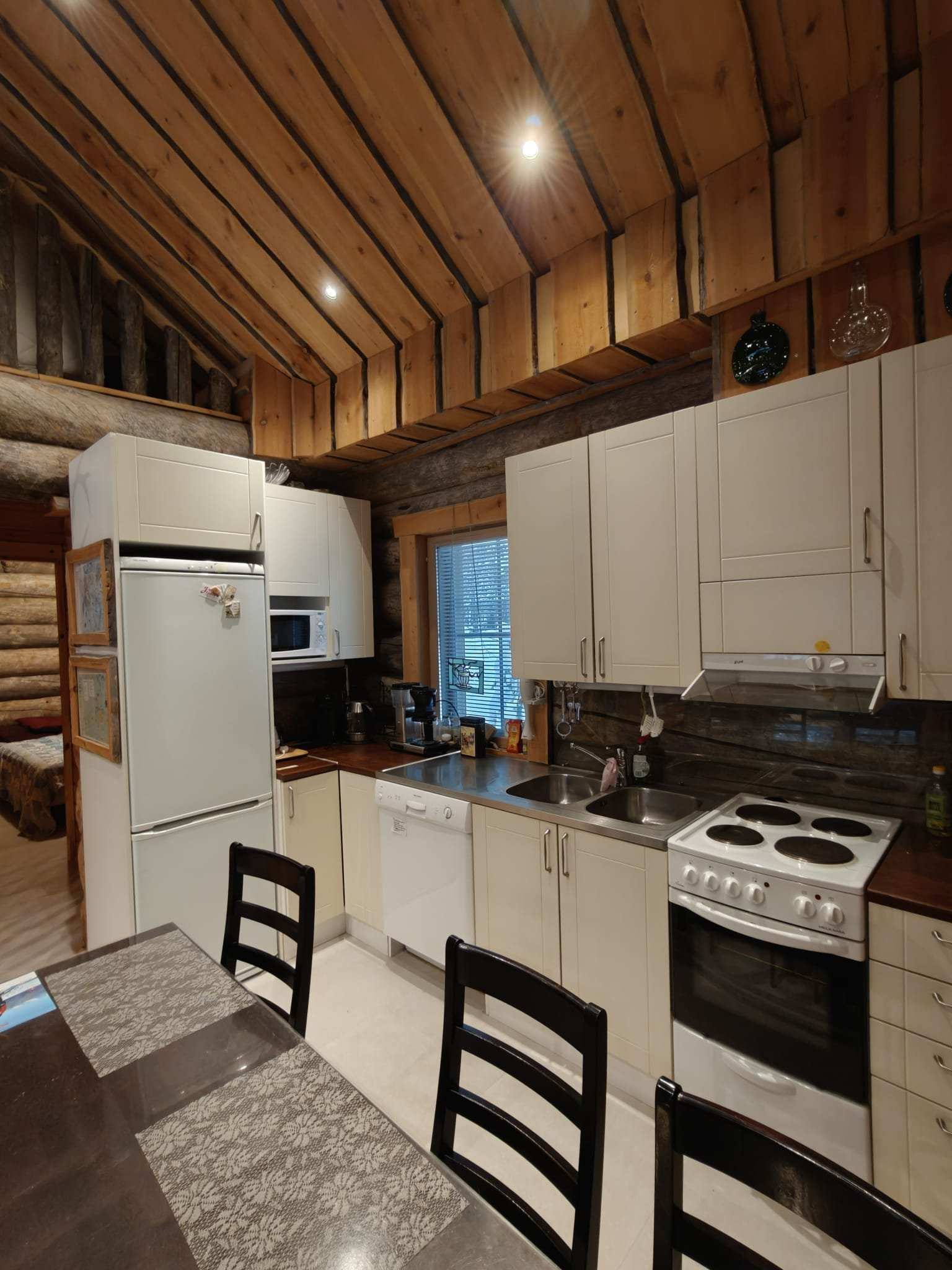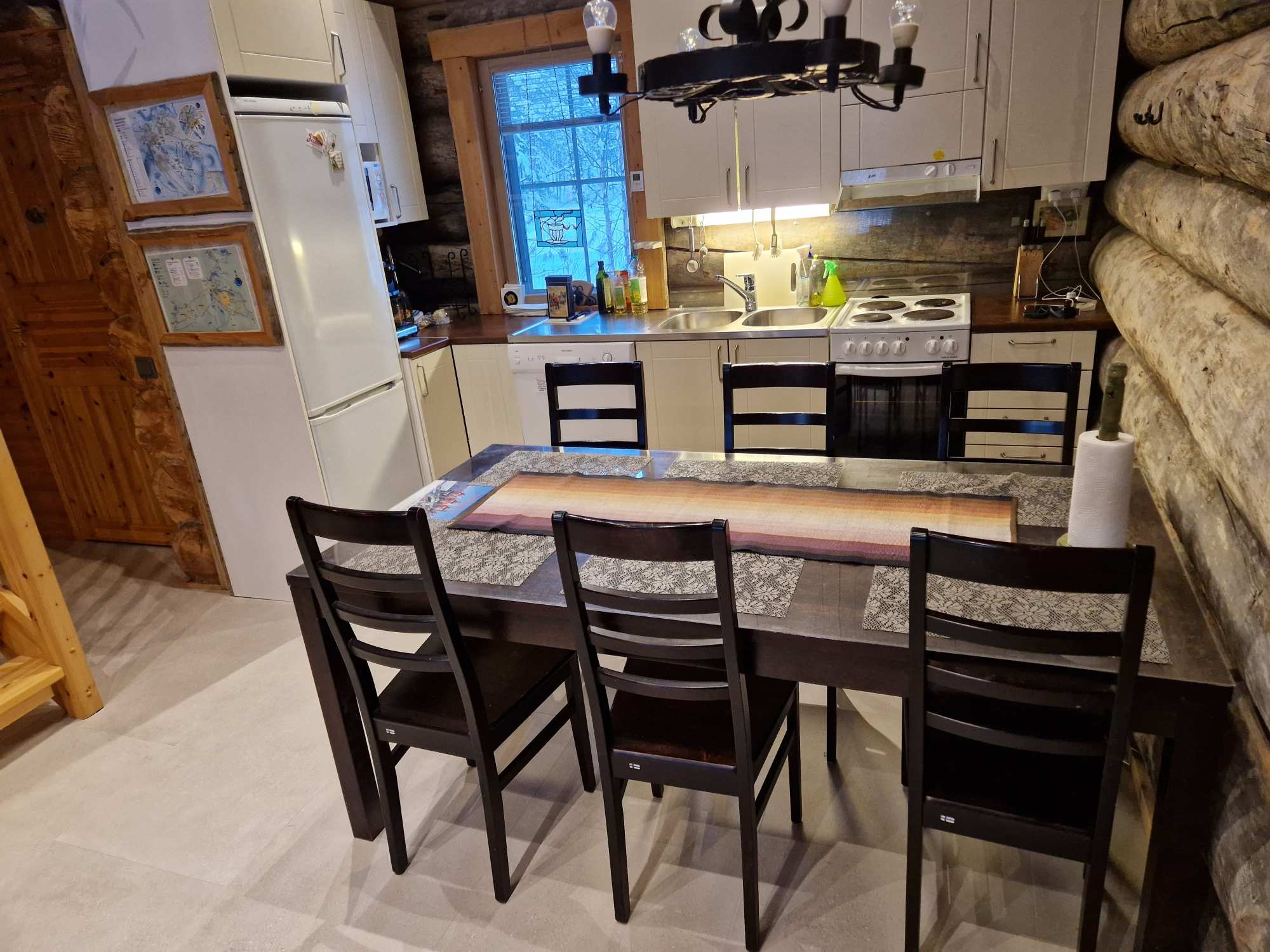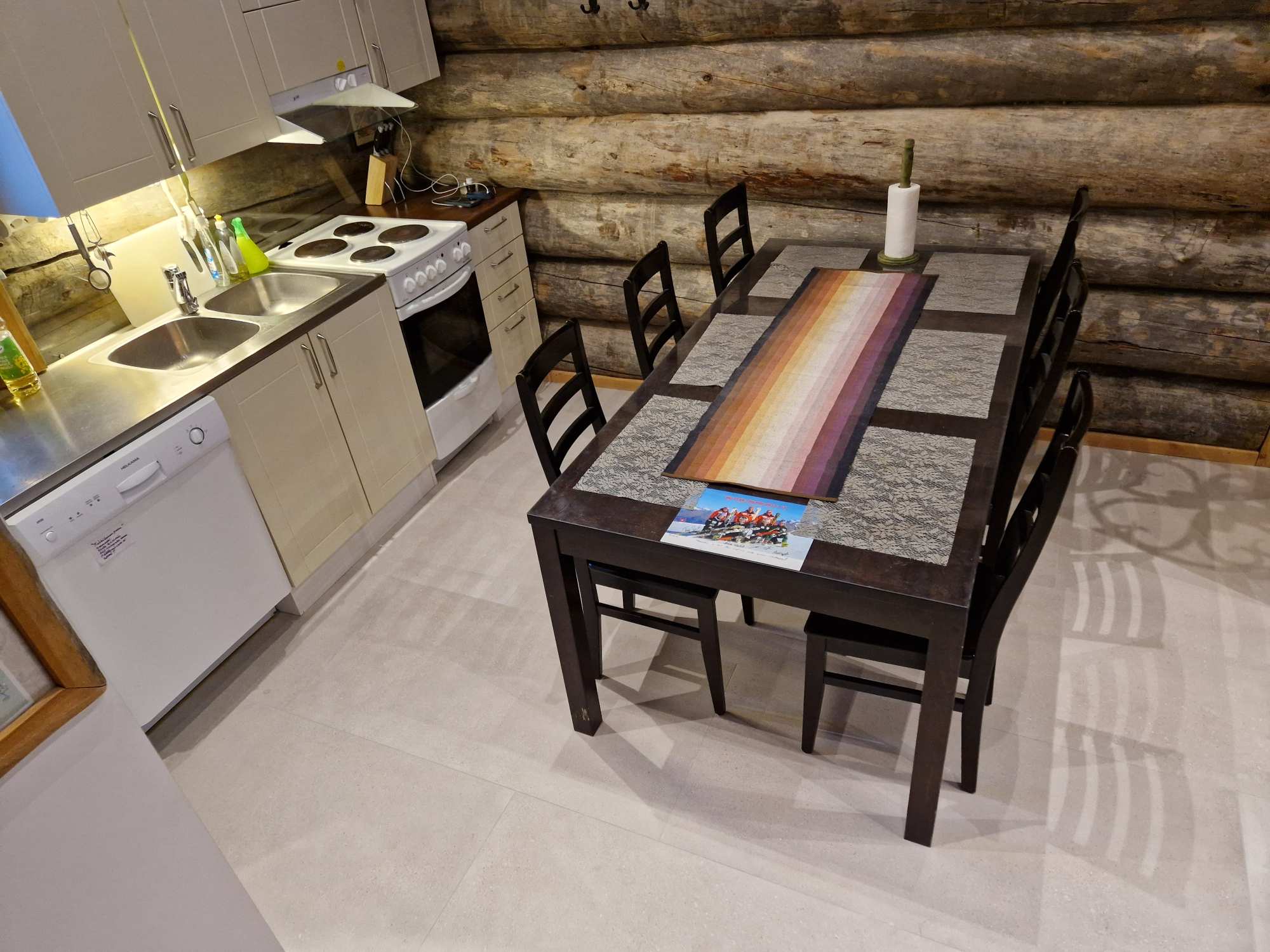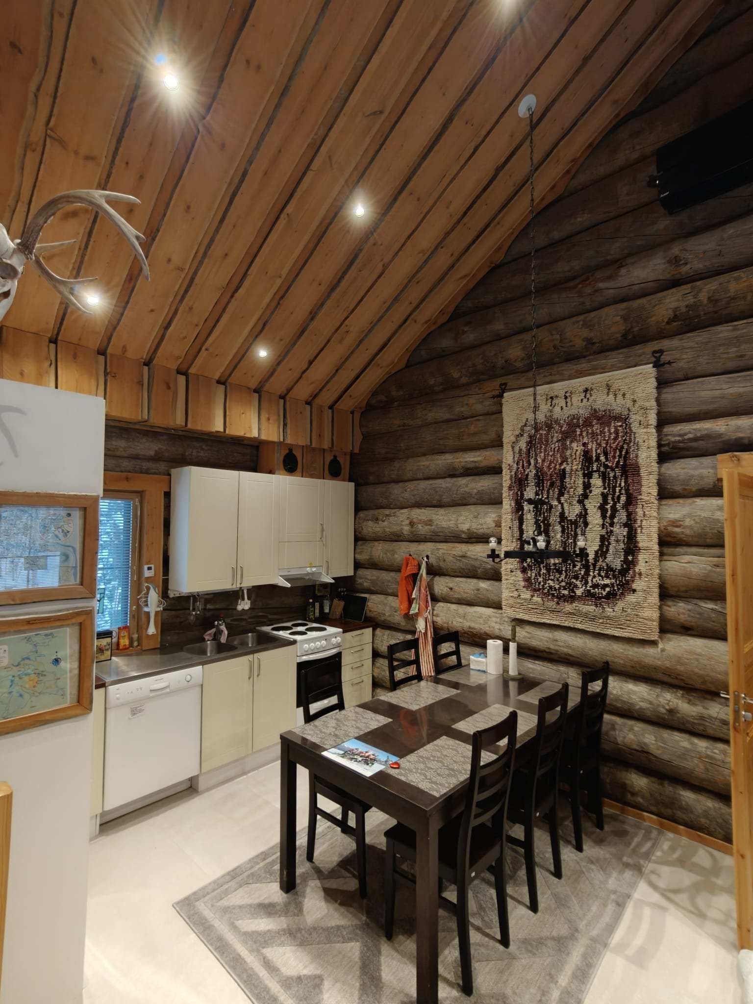 | Keittiön seinämateriaali | Kelohonka 300 mm ja puu |