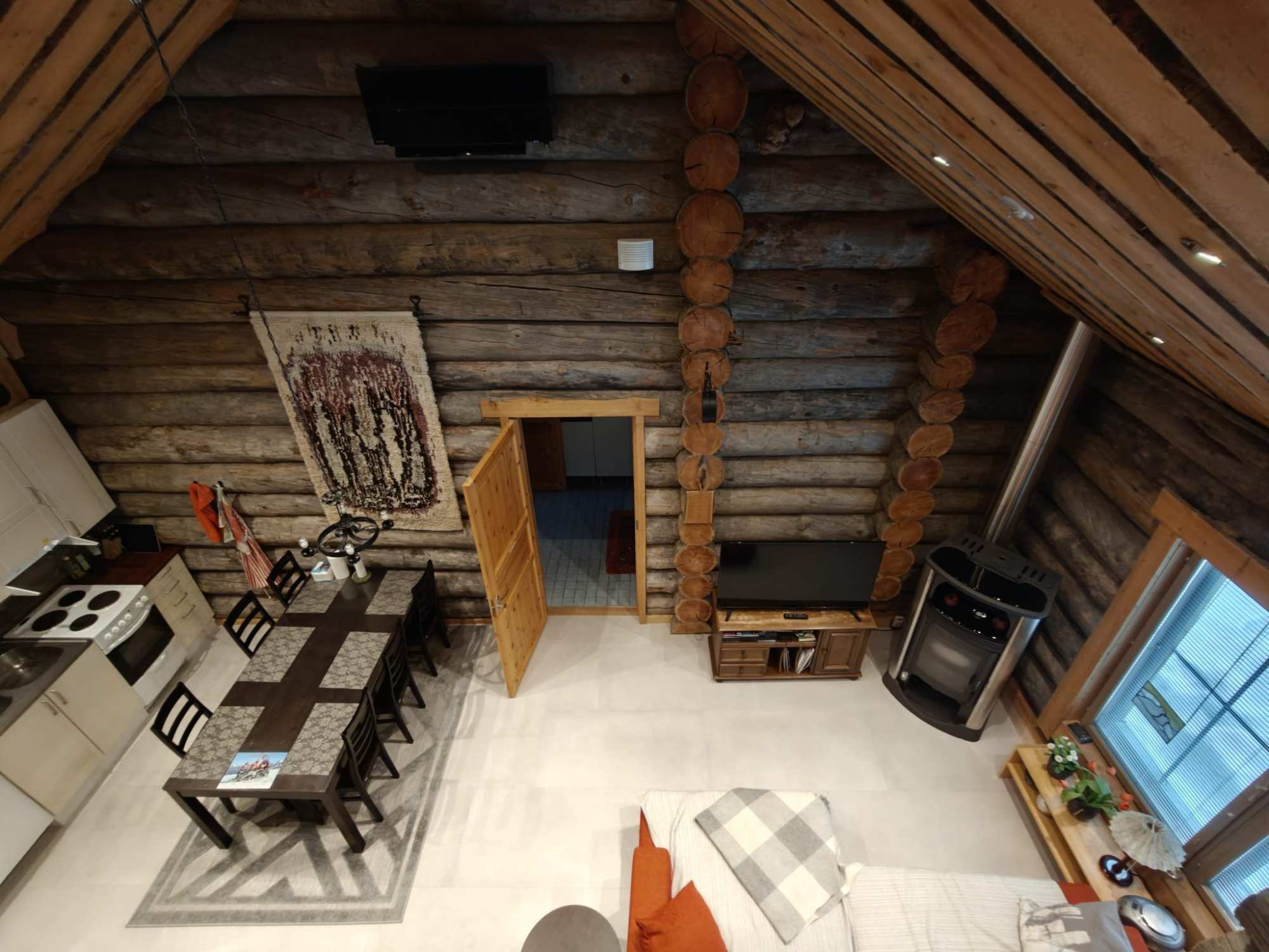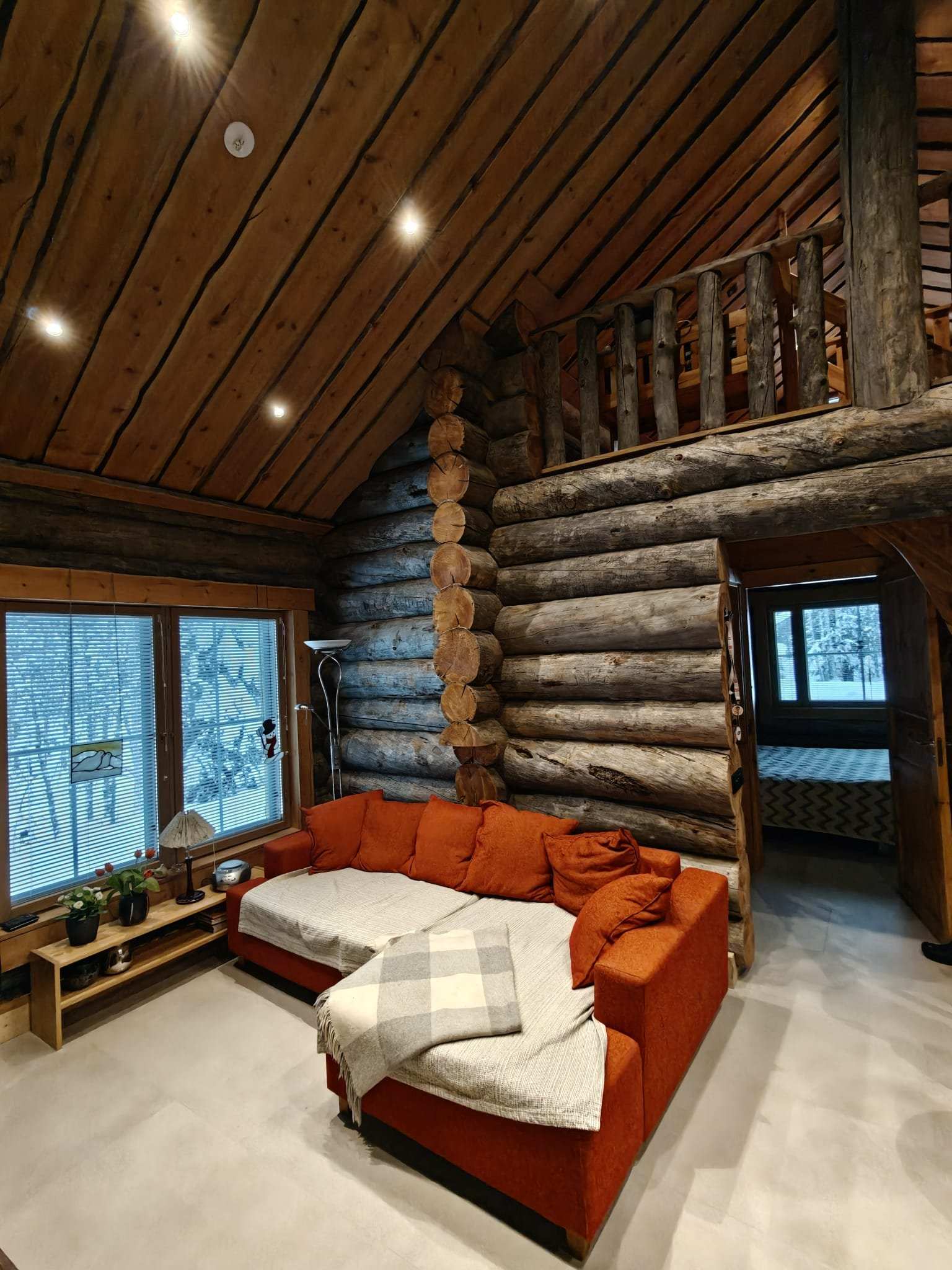 | Olohuoneen seinämateriaali | Kelohonka 300 mm ja puu |