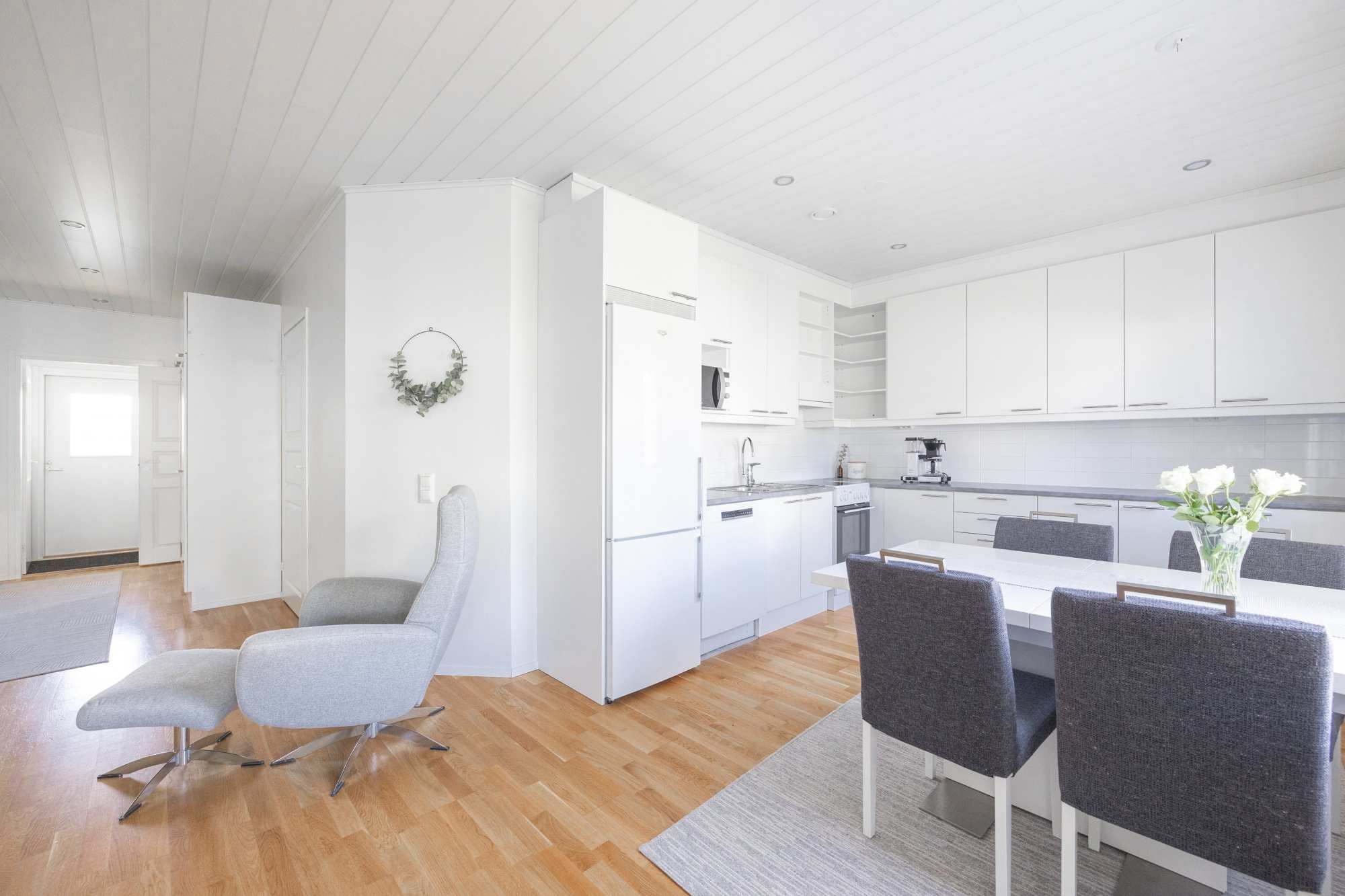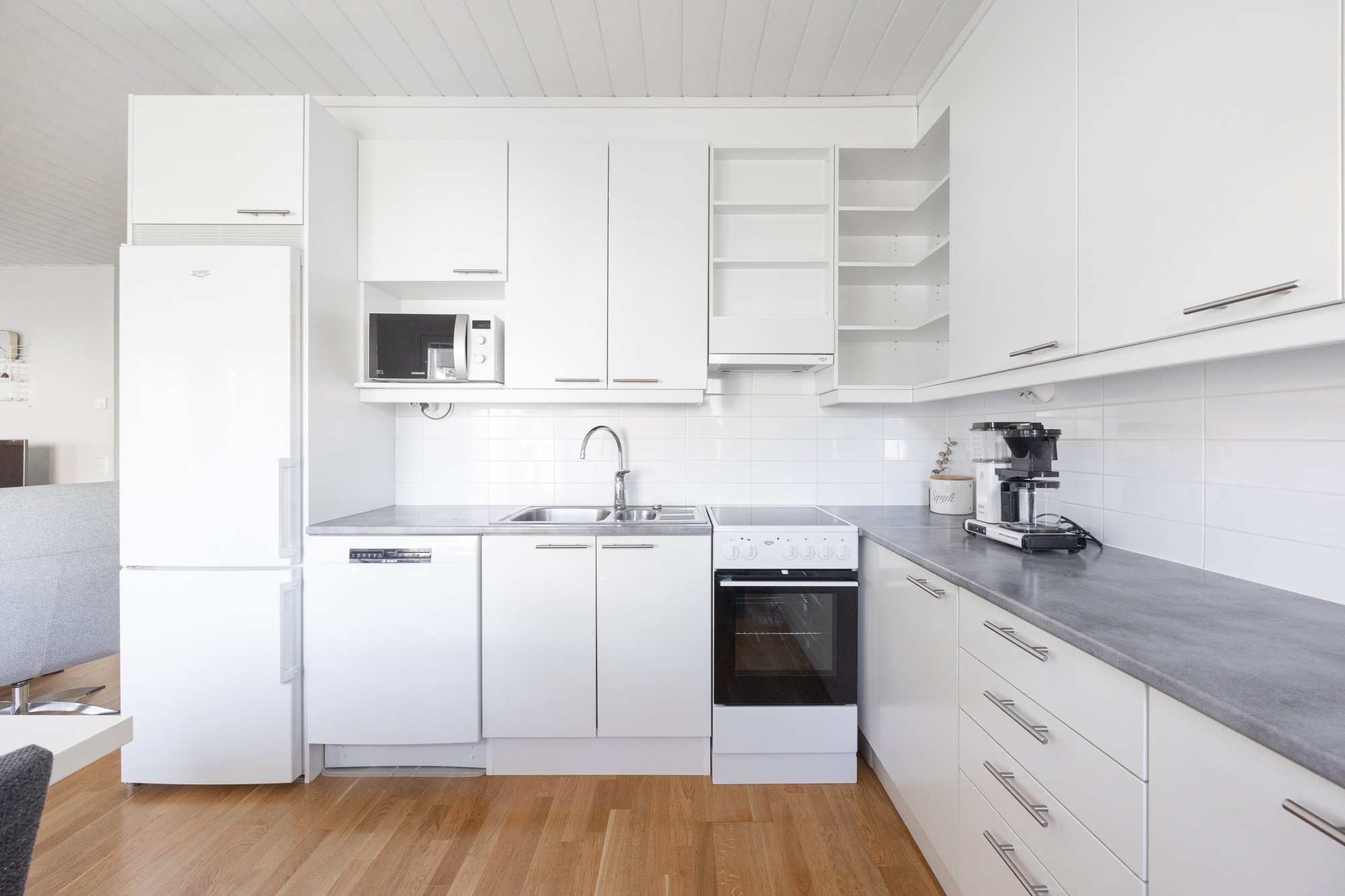 Asunnon sydän on avara ja valoisa olohuone sekä avokeittiö. Keittiö on moderni ja tyylikäs ja tarjoaa mukavat puitteet kokkailuun. Pesuhuoneosasto on toimiva ja moderni. Oma mukava sauna tarjoaa rentouttavat löylyt.