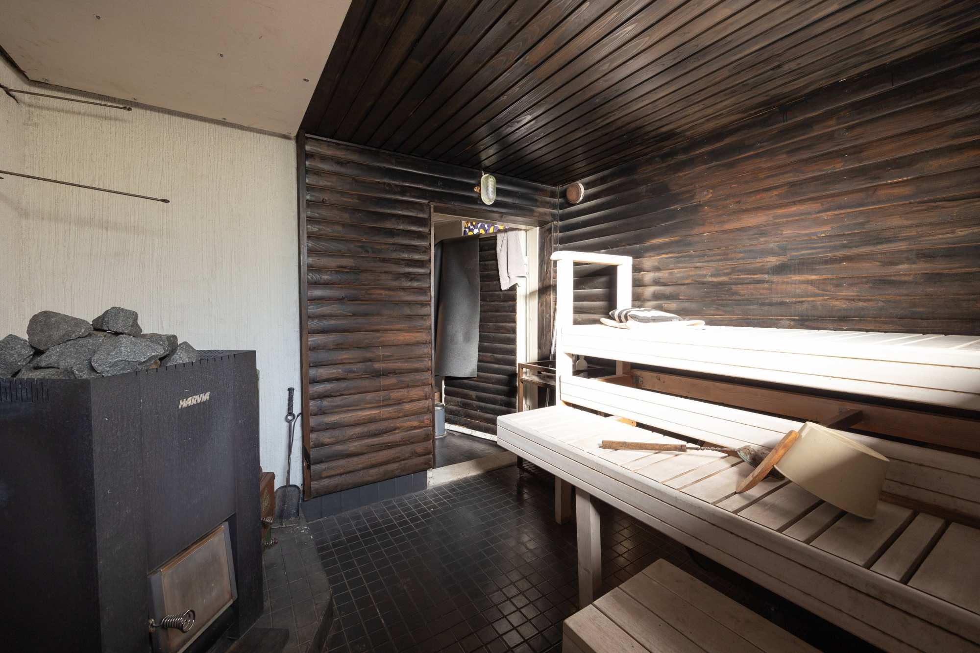 Kylpyhuoneen varusteet | Suihku (1, krs:n kph:ssa ja saunassa) ja pesukoneliitäntä (saunan pukuhuoneessa) |