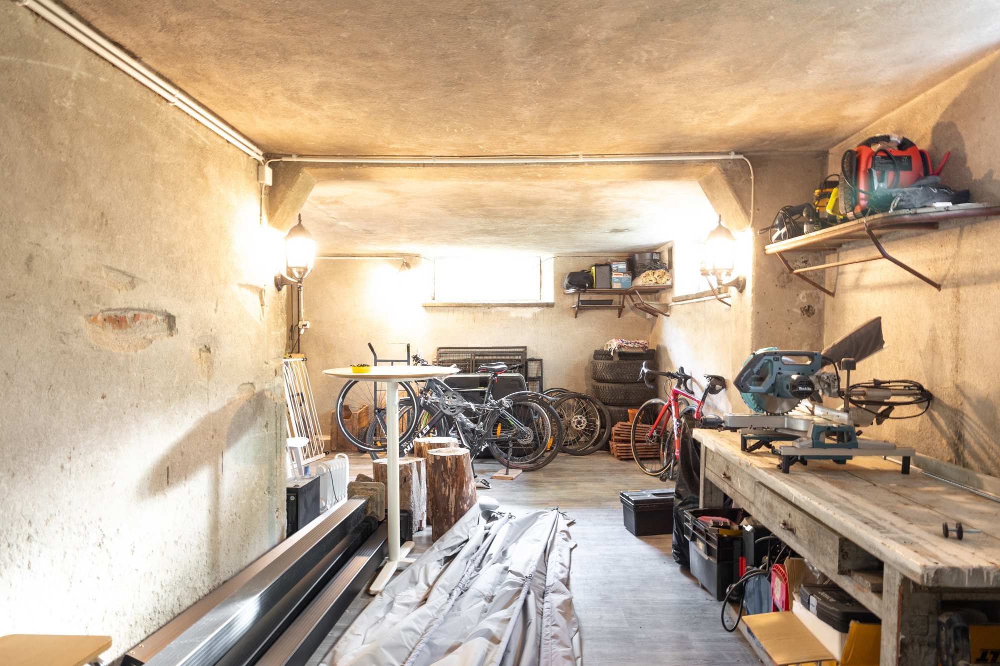 Tilojen kuvaus | Kellarissa saunaosaston lisäksi varastotiloja ja askartelutilaksi muutettu entinen autotalli, jossa puuhella. Kuisti. 2 reilunkokoista vinttiä. Kasvihuone. |