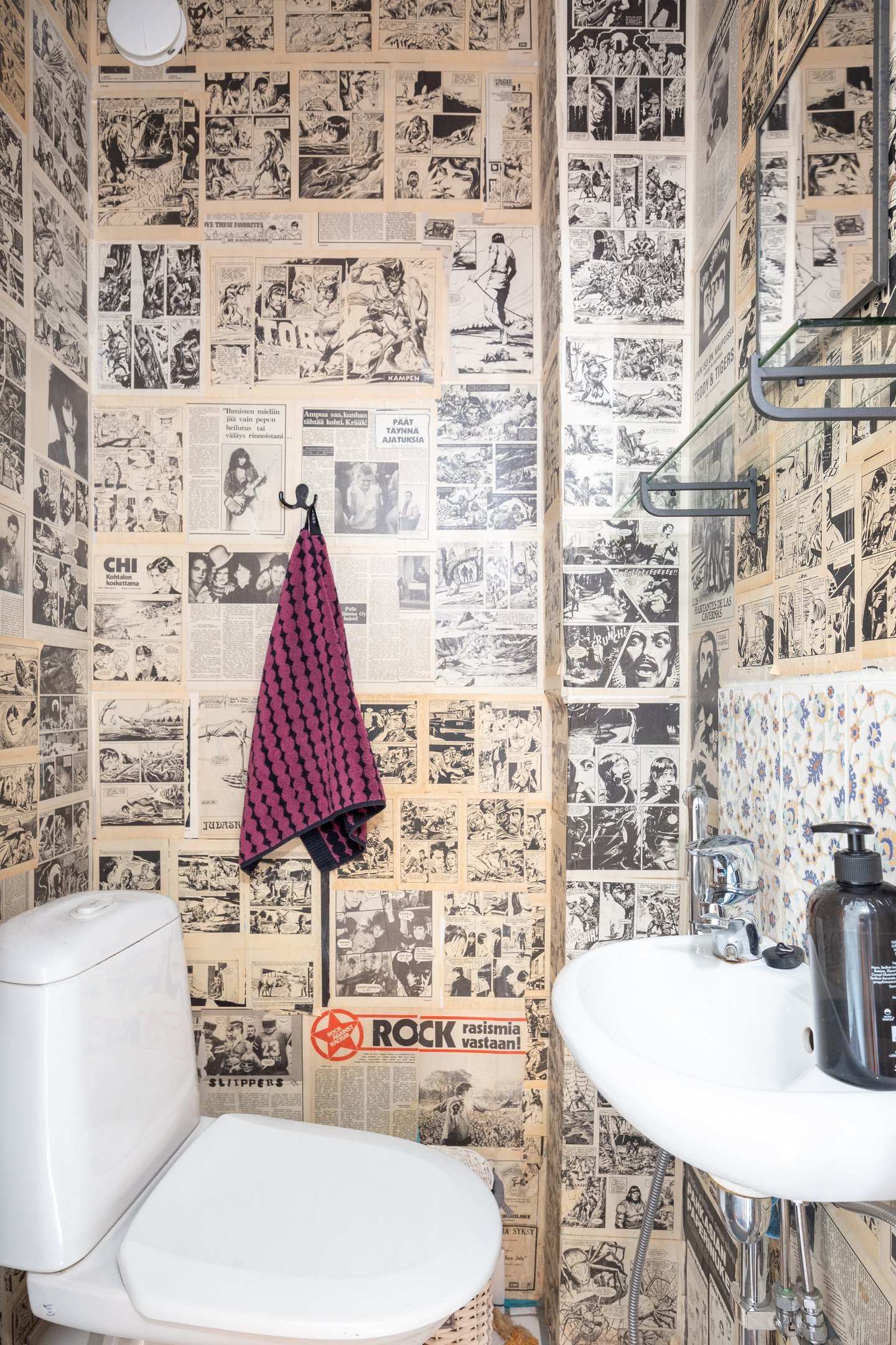 Seinät | Asuinhuoneissa pääosin tapetit, kph:ssa kaakeli |
