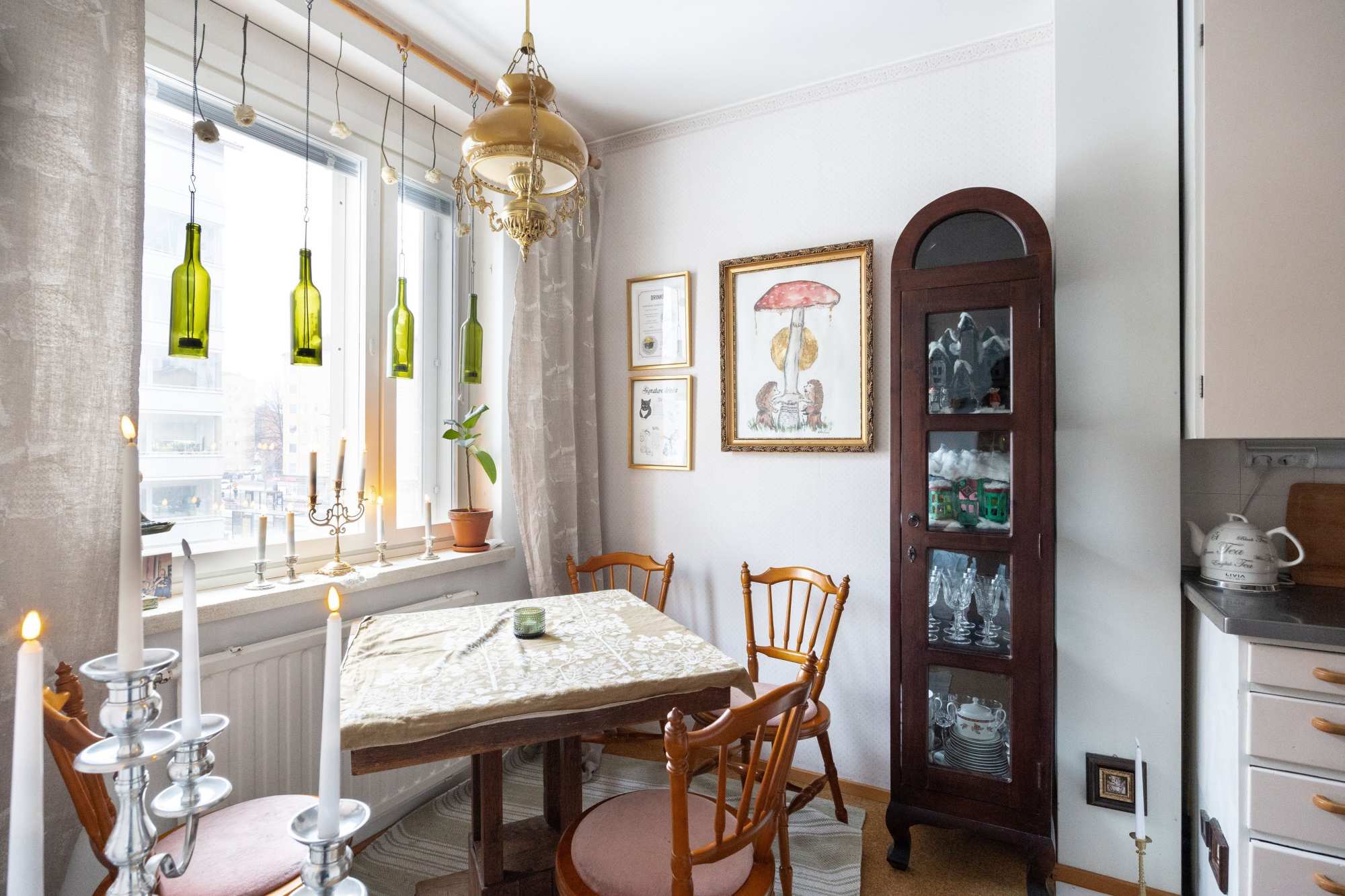 | Keittiön seinämateriaali | Tapetti ja maali |