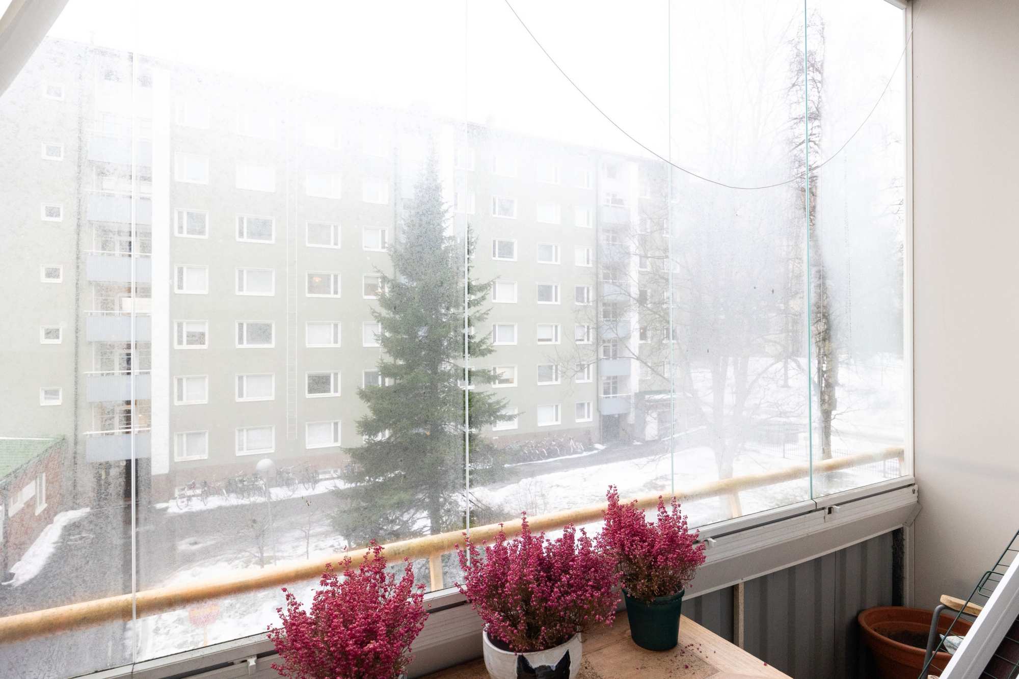 Asunto sijaitsee hissitalon kolmannessa kerroksessa. Lasitettu parveke tuo lisämukavuutta.