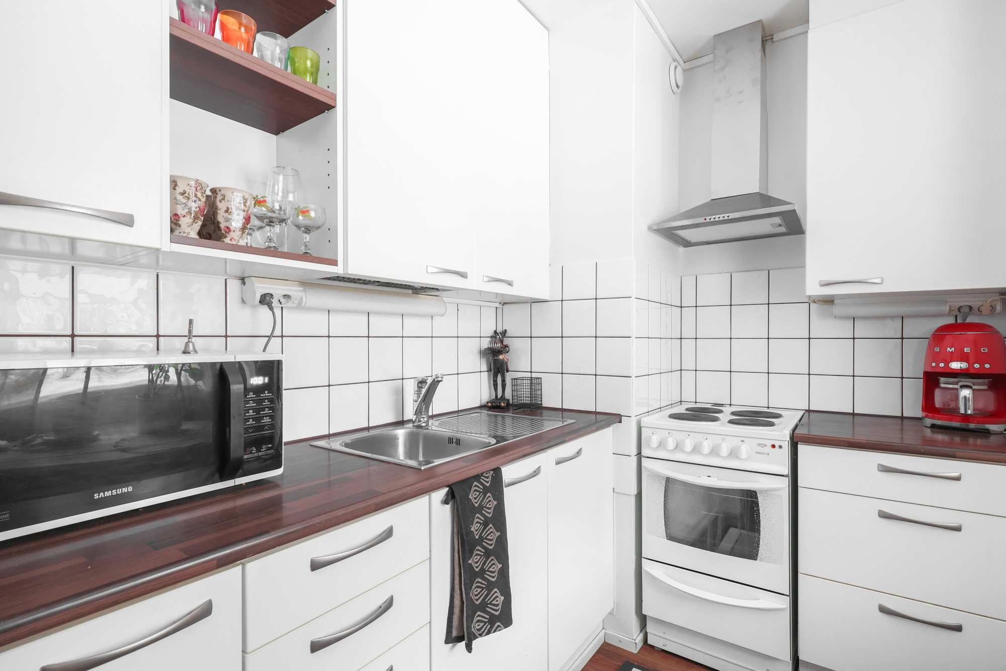 | Keittiön seinämateriaali | Laatta ja maali |