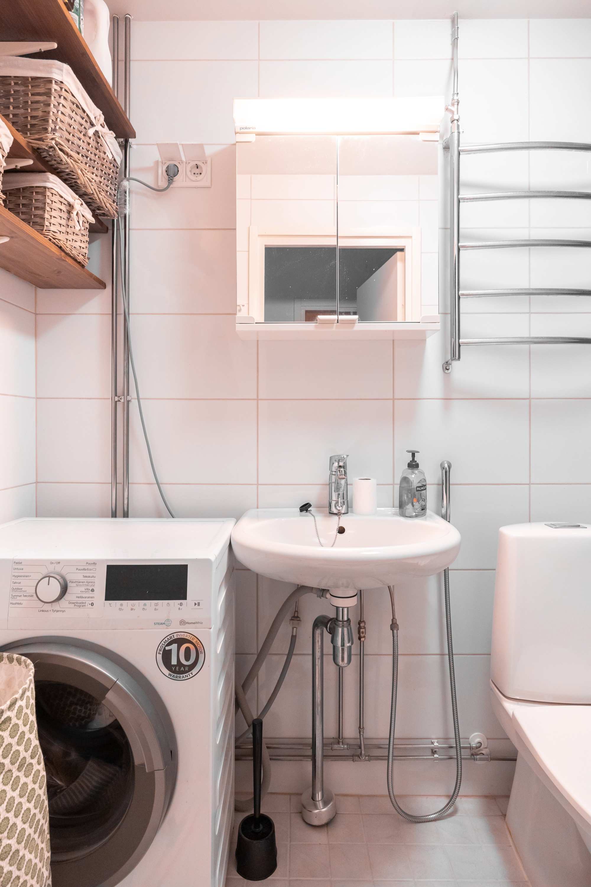 | Kylpyhuoneen varusteet | WC-istuin, suihku, peilikaappi, pesuallas, suihkuseinä, pesukoneliitäntä, bidee-suihku ja lattialämmitys |