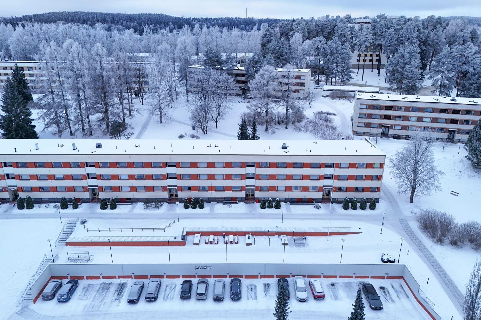 | Taloyhtiöön kuuluu | Kuivaushuone (3 kpl yhtiöj. mukaan), kellarikomero, askarteluhuone, mankeli, urheiluvälinevarasto, väestönsuoja, kaapeli-tv, pesutupa ja kylmäsäilytystila, kerhohuone, saunoja 2 kpl |